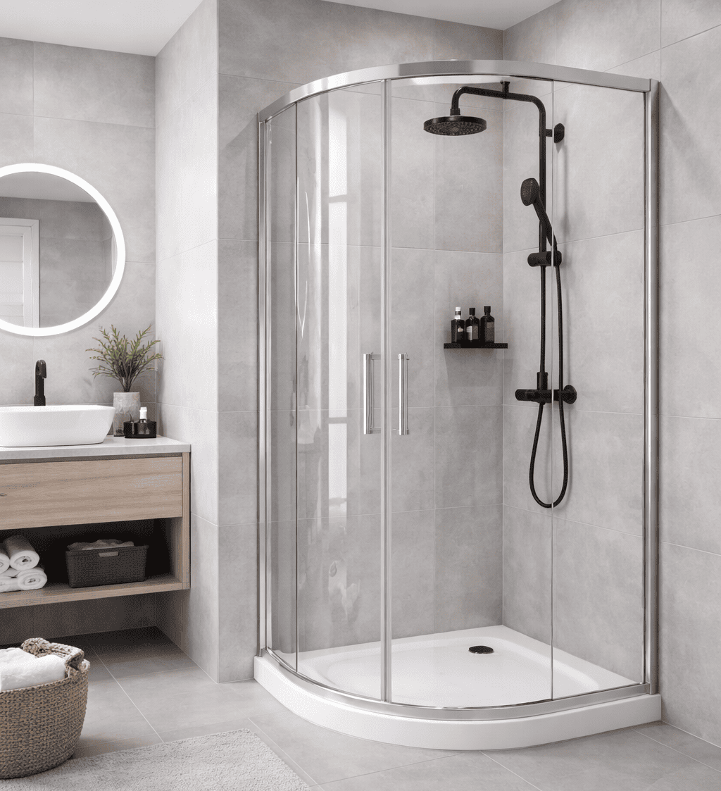 Выбор между петлями с углом открывания 90° и 180° напрямую связан с планировкой ванной комнаты и способом использования душевой зоны. Универсального решения здесь не существует, так как одинаковые петли для стеклянных дверей могут по-разному вести себя в зависимости от геометрии проёма и направления открывания.